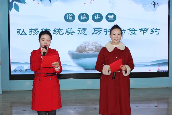 此次道德讲堂活动,巧妙地将欢庆元旦的活动融入其中, 给全体教职工奉上了一套思想洗礼的精神大餐和一场赏心悦目的视角盛宴。既帮助全体教职工牢固树立厉行勤俭节约的意识,又呼吁全体教职工养成勤俭、理性、健康的生活方式,做勤俭节约的传承者、宣传者和践行者。大家纷纷表示,将从身边小事做起,自觉参与节俭养德行动中来,过一个温馨、 欢乐、节俭的元旦佳节。