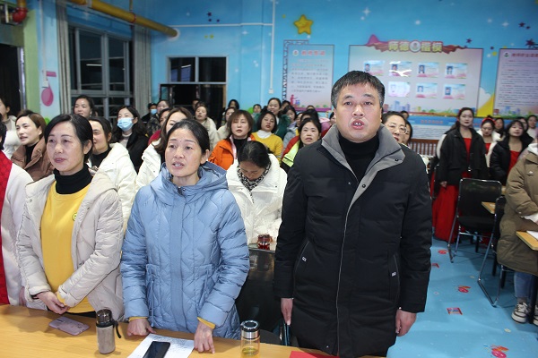 清风网讯 (通讯员: 陈中媛、王志敏) 为进一步弘扬中华民族勤俭节约的传统美德,倡导勤俭节约的绿色生活,推动节约型幼儿园文明建设。2021年12月31日晚,英山县县直机关幼儿园承办的“弘扬传统美德 厉行勤俭节约”主题道德讲堂活动在四楼多媒体教室精彩开讲,活动围绕“唱歌曲、看视频、讲故事、诵经典、谈感悟、作承诺、庆元旦”七个环节依次展开。全体教职工齐唱《勤俭节约歌》,在歌声中重温了粮食的得来不易;通过主持人的讲解和视频中的故事,真正理解了弘扬“勤俭节约”的意义 ;“我们应当让勤俭节约成为一种精神状态,让勤俭节约成为一种生活方式、一种习惯” 两位职工代表畅谈了学习感悟; 全体教职工在“光盘行动、勤俭节约”方面进行承诺;最后,精彩纷呈的元旦欢庆活动将此期道德讲堂推上了高潮,欢庆活动主题鲜明、积极向上,形式新颖、种类齐全,台上精彩不断、台下欢呼不止。