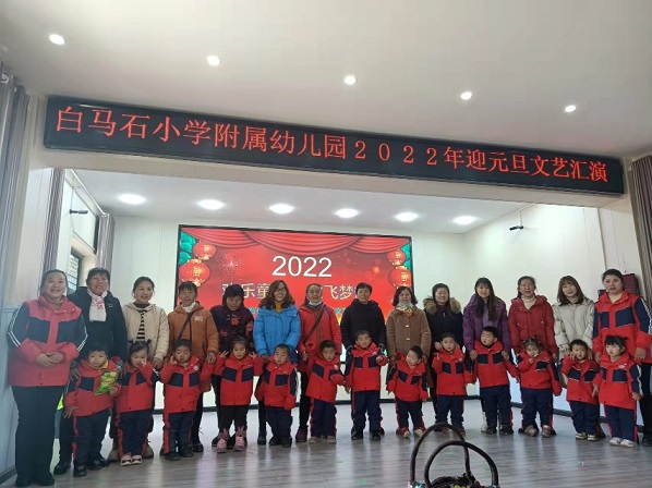 网讯(通讯员: 段祯祯)2021年12月31日上午九点半,英山县杨柳湾镇白马石小学附属幼儿园全体幼儿,家长,教师们欢聚该校多功能报告厅,载歌载舞,共同迎接2022年元旦的到来!