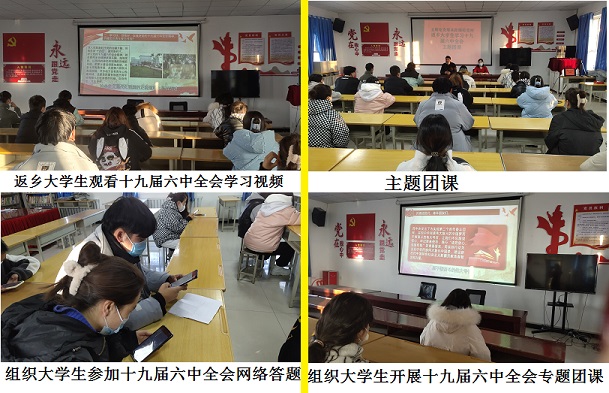 1月3日上午,工作队与团支部一起组织村里的25名返乡大学生开展一次十九届六中全会学习主题团课,通过唱团歌、听网上团课,参加十九届六中全会知识网络答题等环节,对返乡的大学生开展十九届六中全会的宣传教育。