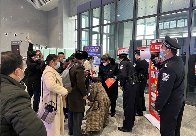为了让旅客坐车回家的路更安心、更放心、更舒心,松桃站派出所民警结合春运期间客流量大、疫情防控风险高等特点,启用多项服务措施,全力护航旅客的春运回家路。