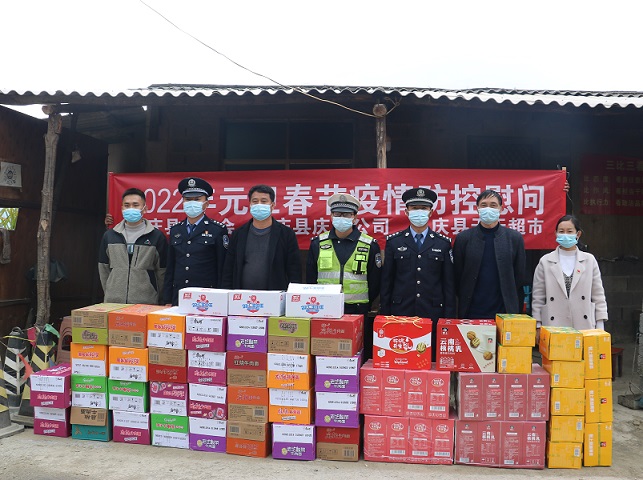 清风网讯(腰街乡:张正彪)近日,凤庆县总工会联合庆丰公司、天天超市到腰街乡风吹山疫情防控卡点进行慰问,为奋战在疫情防控一线的工作人员送去了矿泉水、方便面、核桃乳、火腿肠等90余件慰问品。