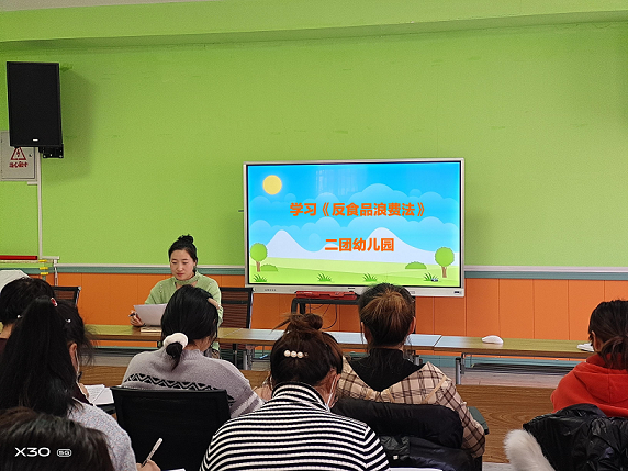 二团幼儿园充分利用单位微信群、讲座等宣传《反食品浪费法》。通过宣传,教职工详细了解了我国粮食安全国情,进一步提升了爱粮节粮、知法守法的思想意识。下一步,二团幼儿园将继续强化《反食品浪费法》的宣传,营造“浪费可耻、节约光荣”的浓厚氛围。同时,通过进一步完善食堂管理制度,制定实施反食品浪费措施,从而建立厉行节约、反对浪费的长效机制。