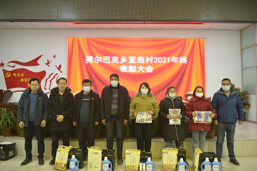 为了深入贯彻落实党的十九届六中全会精神,牢牢扭住社会稳定和长治久安总目标,进一步推进农村基层组织建设,增强村级党组织凝聚力和战斗力,通过表彰先进,树立标杆,激发广大村组干部的干事创业热情。1月18日,努尔巴克乡亚当村召开2021年度表彰大会,亚当村第一书记,工作队队长田睿及工作队成员,村干部,部分党员参加会议。会上,对优秀村干部,小组长,党员进行了表彰。