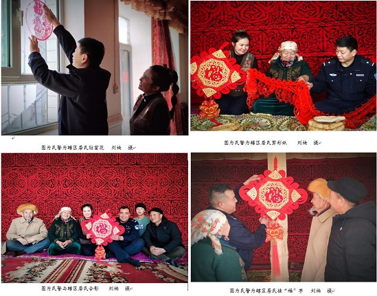 1月25日,新疆克州边境管理支队膘尔托考依边境派出所组织民警开展送“福”进辖区活动,为辖区群众送去新春的祝福和良好的祝愿。