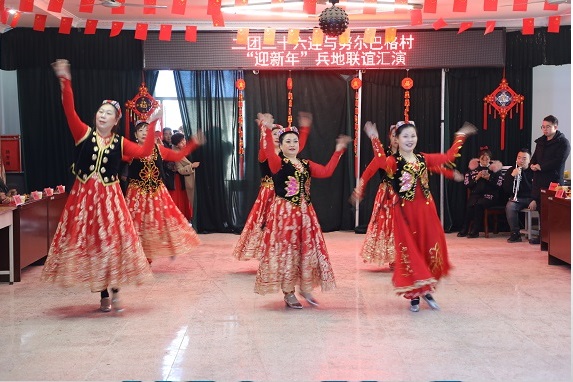 为迎接开启第二个百年奋斗目标新征程的首个农历春节,生动反映干部群众扎根边疆、建设兵团、服务团场,忠实履行维稳戍边职责的同时,积极创造幸福美好生活的状态。二团引导基层单位职工自编、自导、自演的文艺节目、民俗表演,有序开展“连队春晚”活动,营造热烈、喜庆、祥和的节日氛围,增强职工群众的获得感和幸福感。