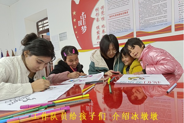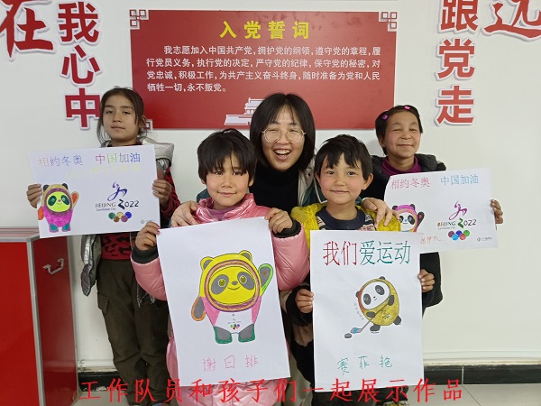 为在广大村民中营造支持冬奥、参与冬奥的浓厚氛围,工作队从孩子开始培养他们对冰雪运动的喜爱,工作队员带领孩子们把冬奥会吉祥物“冰墩墩”画在纸上,贴在墙上,培养孩子们对奥林匹克的认识,对冰雪运动的热情,不断努力营造人人参与冰雪的浓厚氛围,为村里增添了热闹欢乐的气息。