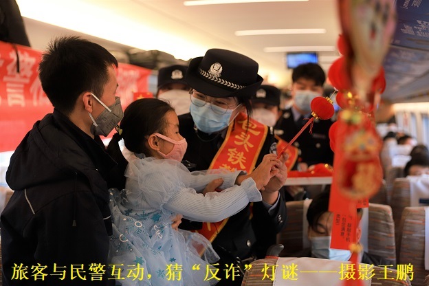 列车上的旅客们纷纷表示:“元宵节坐火车能学到预防电信的知识,还能拿到小礼物,铁路民警组织的这场活动太棒了!”