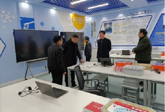 参观过程中,袁超一行先是听取了金铺中学校长陈雄飞就校园科技馆的基础建设、人员配备、运行管理、科普活动等方面的详细介绍。随后在讲解员老师的带领下,实地参观了该校校园科普文化展厅、科普远程教室、科普体验区和创客空间。袁超表示,金铺中学善于挖掘科普资源,办学理念超前,科普文化浓厚,白石坳小学作为新批准的湖北省科普教育学校、黄冈市科普教育基地,要多跟金铺中学学习借鉴好的做法。要建好自己的科普场馆,要提炼自己的科普特色,要发挥城区校园优势,利用好优质教师资源,办好省级科普教育学校。