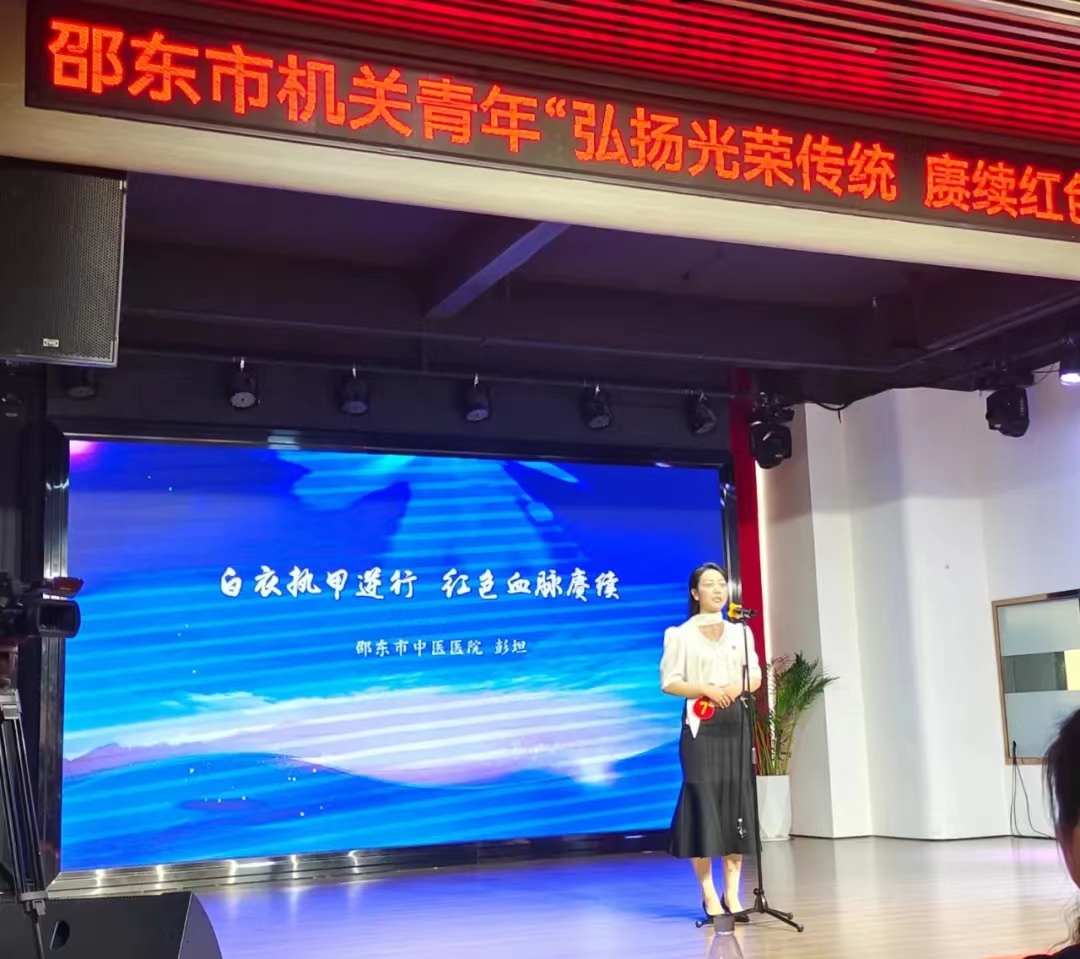 决赛中,邵东市中医医院老年科护士长彭坦作为该市卫健系统代表,以《白衣执甲逆行 红色血脉赓续》为题,用自然流畅的语言、真挚细腻的感情、鲜活感人的事迹讲述了邵东市医务人员在新冠肺炎疫情期间,第一时间扛起全市战疫大旗,在抗疫一线奋勇当先、“舍小家、为大家”、甘于奉献的感人故事。精彩的演讲,赢得了在场评委和观众的强烈共鸣和阵阵掌声。