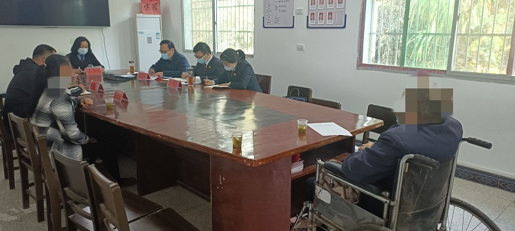 社区矫正对象郑某某,男,现年61岁,2004年因在外务工期间发生矿难,造成其胸部以下高位截瘫,被鉴定为肢体二级残疾,此后卧病在床十几年,后因身体久躺生疮,遂购买了一台残疾人电动三轮车代步,但又因驾驶未办理号牌的电动三轮车上路行驶与他人发生交通事故,造成一名70岁的老人死亡,被英山县人民法院以交通肇事罪判处有期徒刑一年二个月,缓刑一年六个月。郑某某被纳入社区矫正后,因其行动不便,出行特别困难,为了确保社区矫正执法规范性及法律法规的严肃性,保证郑某某能在规定的时间内接受社区矫正,我县社区矫正局秉承社区矫正“宽严相济”的刑罚执行政策和“以人为本”的管理理念,首次走出庄严的社区矫正局宣告室,组织司法所、村委会干部一起来到陈家垸村党员群众服务中心,对郑某某进行入矫宣告。英山县人民检察院第三检察部派员全程参与此次入矫宣告活动。