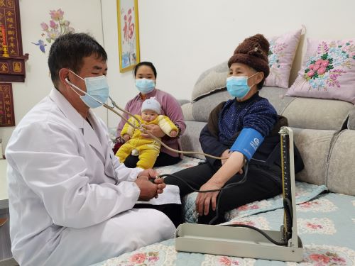 除了平时接诊前来卫生室看病的群众以外,石昌美还定期上门查看行动不便的村民。上门为他们进行慢病随访、免费检查身体,发放健康医疗宣传资料,新型冠状病毒感染防范知识,及时掌握特殊人群的身体健康状况变化,做到疾病“早发现、早治疗”。