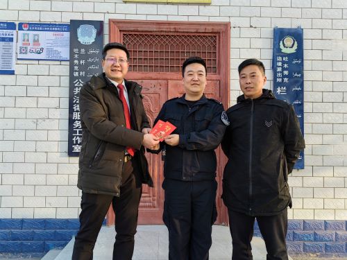 1月10日,在第三个中国人民警察节到来之际,自治区地矿局驻温宿县吐木秀克镇兰杆村工作队队长、第一书记李文辉走访慰问村警务室民警、辅警,向他们送上节日的诚挚问候和美好祝福,并送上慰问金,感谢一线人民警察的辛勤付出。