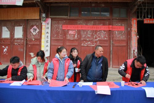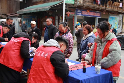 癸卯兔岁将至,为弘扬中华民族传统文化,营造喜庆祥和的新春佳节氛围,1月19日,从江县加榜乡团委组织返乡大学生开展“雏雁返乡献丹心,执笔挥墨送春意”送春联活动,为辖区群众送上新春“文化贺礼”。