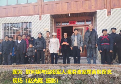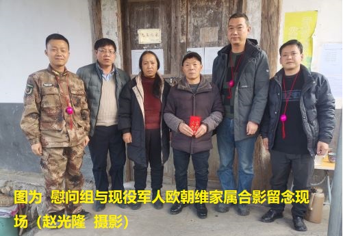 慰问活动当天,村民们自发组织有的吹着芦笙、敲锣打鼓、有的披披风、有的放鞭炮,大家分工协作,先后到欧海涛、欧孟南等8位现役军人家中进行走访慰问,详细了解军属的生产生活和身体情况,感谢军人家属对国防事业的支持和奉献,并送去关怀与祝福和慰问金,用实际行动表达对军人军属的爱戴和尊崇。同时,军属们为大家戴上红蛋、送上热茶、递上糖果,邀请大家一起就餐,对全村村民的关心与厚爱表示感谢。