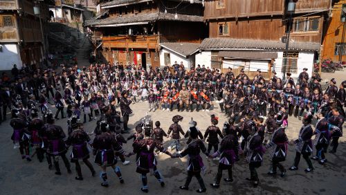 之后,全村男女老少集中到鼓楼坪开展《踩歌堂》欢庆,以侗族人的最高礼遇褒扬军人。在踩歌堂时,军属身披“军属光荣”绶带坐在歌堂中央成为“贵宾”,全村男女老少齐着盛装、手拉着手,围着“贵宾”载歌载舞。歌师们现场编歌对唱,由于歌词韵味浓、寓意深,富有时代感,引来了阵阵掌声、欢呼声和笑声,现场气氛十分热烈,高潮迭起,引来了周边村寨群众的围观,呈现出浓浓的鱼水情深。