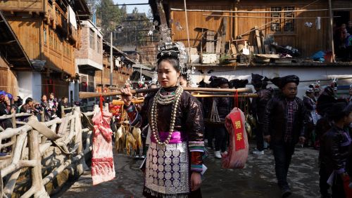1月31日,趁着年味正浓,从江县谷坪乡银潭村开展了一场高规格的拥军活动。全村男女老少齐着盛装早早就来到村委门口集中等候安排了。你听!锣鼓声、芦笙声、铁炮声不绝于耳,气氛热闹非凡。你看!那礼品有代表侗族最高敬人礼物的两只羊,有猪肉、稻田鱼、水果、糖,还有侗族年货、柴火等等,如同送亲一般。