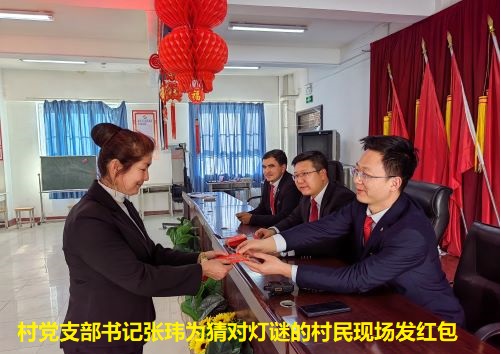 活动当日,兰杆村党支部组织开展“永远跟党走 幸福迎元宵”主题党日活动。全体党员在兰杆村爱国主义教育基地重温入党誓词,在第一书记李文辉的带领下,大家举起右拳,面向党旗庄严宣誓,铿锵的誓词声声在耳,表达了为党的事业奋斗终身的决心。宣誓完毕后,全体党员拿着现金依次有序地排队交纳党费,党支部相关负责人一一收取、登记,通过这种“仪式感”满满的方式进一步引导党员深刻认识到按时足额交纳党费是每名党员应尽的责任和义务。随后开展了猜灯谜活动,本次灯谜内容涵盖党的二十大报告、党章、党史、字谜等,将传统文化与党的理论知识相结合,猜出答案便可现场领取红包一个,既具知识性,又具趣味性。通过本次主题党日活动,更加坚定了全体党员干部理想信念,进一步砥砺了初心使命、增强了永远跟党走、践行二十大 、奋进新征程的信心与斗志。