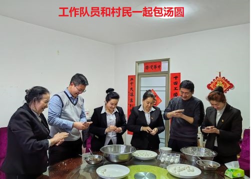 当日,工作队员早早就准备好了包汤圆所需要的材料和工具,并邀请村民一起参与,共同体验传统文化的魅力。活动开始前,工作队员为村民讲解并示范了包元宵的方法及要点。虽然没什么经验,但在工作队员的指导下,村民们很快上手,揉、捏、按、团,一个个白白圆圆的汤圆在村民手中快速成型。