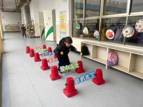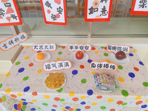 为了迎接小朋友们的到来,老师们准备了别出心裁的进班仪式。教室门口的长条桌上,红包、巧克力、糖果和小橘子一字排开,孩子们领取着礼品,接受着老师的新年祝福;“心想事成”摊位前,孩子们用稚嫩的笔迹在小卡片上书写新年的第一个愿望;“步步高升”摊位前,孩子们跨过一道道坎,收获一个个美好心愿;孩子们拿着象征生财和聪明伶俐的生菜和小葱,老师为其拍照留念。寓意满满、充满童趣的小游戏让小朋友们对新的学期充满了期待。