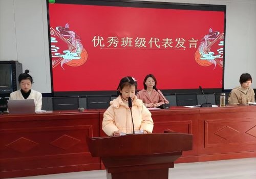 典礼上,学校对上学期表现突出的优秀班级、优秀学生进行了表彰。一年级的优秀学生代表刘依依发言,年龄虽小,干劲却很大,她说要养成良好的习惯,一点一点的进步,争做文明优秀的小学生。六年级的同学在两位老师的带领下庄严宣誓,立志为迎接小考而奋发努力,一步一个脚印,夯实每一步基础。