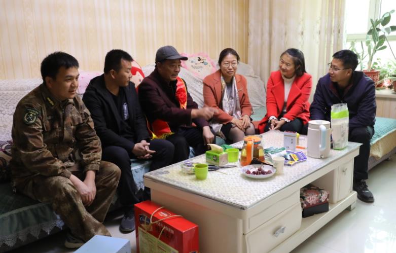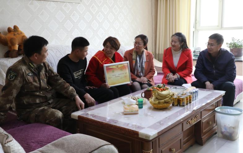 每到一家受奖军人家中,慰问组人员为军人家属披上绶带、戴上红花、送上喜报、慰问金和慰问品,家属接过满载着荣誉的喜报,喜悦与自豪之情溢于言表。慰问组与军人家属围坐在一起亲切交谈,送祝福、拉家常、话未来,详细了解军人家属的工作、生活、身体等情况。希望军人家属一如既往地鼓励孩子在保家卫国的神圣岗位上,不忘初心、锤炼意志、增强本领,争取以更好的成绩和更优异的表现为国防事业作贡献,为家乡增光添彩。