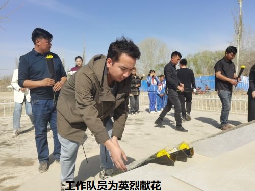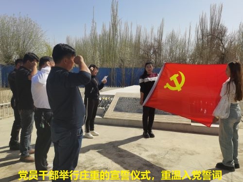 活动中,”访惠聚”工作队第一书记王兰向学生们介绍了烈士的英勇事迹,号召学生永远铭记先烈的英勇事迹,学生们聆听了阿不来提·塔依甫烈士事迹,在烈士纪念碑前,全体人员神情肃穆,怀着无比崇敬的心情向先烈默哀,敬献鲜花,表达深深的哀思。随后,在鲜红的党旗下,党员干部庄严地举起右手,重温入党誓词,强化党性修养再一次接受思想洗礼,表达他们对烈士的哀思和崇高敬意。