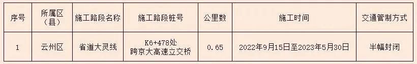 北环路(云冈路-北苑路)改扩建工程,全封闭施工时间延长至2023年9月30日。