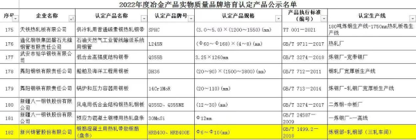 近日,中国钢铁工业协会钢铁行业冶金产品实物质量品牌培育专业评审会议在广西防城港召开,新兴铸管股份有限公司生产的HRB400、HRB400E优质高强热轧盘螺产品凭借优质的产品质量,荣获中国钢铁工业协会2022年度冶金产品实物质量“金杯优质产品”称号。