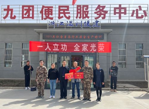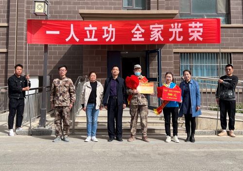 4月10日,新疆生产建设兵团第一师阿拉尔市九团党委常委、人武部部长、政法委书记李浩明带领人武部同九团退役军人服务站工作人员一行为荣获“四有”优秀士兵的陈明东和“四有”优秀学员的唐禧瑞两位现役军人军属送去喜报。