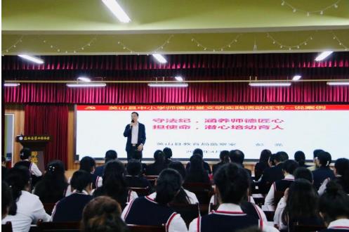 教师是立校之本,师德是教育之魂。为进一步激励广大教师和教育工作者为教育事业做贡献,大力营造尊师重教的浓厚氛围,4月14日晚,英山县第二幼儿园举办2023年春季师德讲堂活动。教育局党组成员、副局长赵丽、副科级干部段金容、教师管理股负责人许秀玲、监察室干部彭亮出席活动。