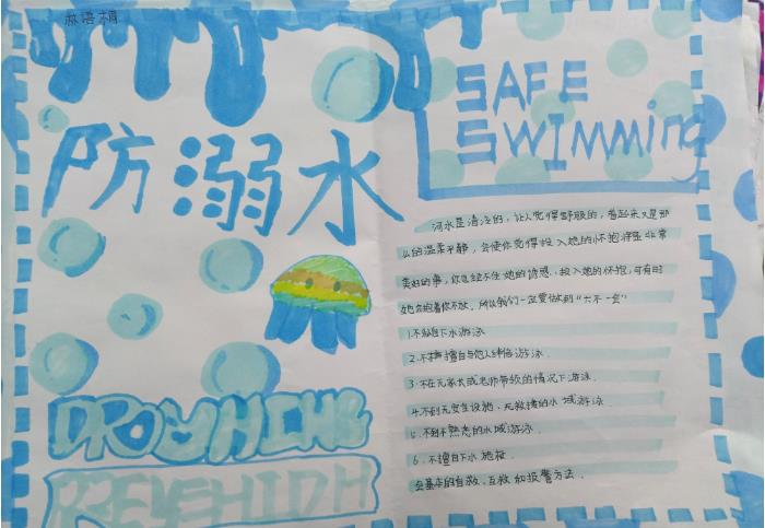 通过这次活动,孩子们再次为溺水事故的发生加上了一层厚厚的的“防护网”。他们用一张张富有想象力的手抄报亲切的提醒了所有人:珍爱生命,预防溺水!(通讯员:马芸、林彰平)