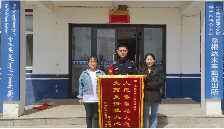 近日,桑根达来车站派出所收到了一面印有“人民警察为人民,失而复得暖人心”的锦旗,感谢桑根达来所民警履职尽责、为民服务,及时为其找回遗失手机。
