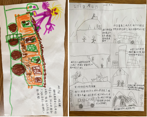 参观完博物馆后,孩子们敬畏先辈们的艰苦岁月和军垦精神,感叹先辈们的崇高思想,孩子们把自己看到的,听到的,画在了画纸上,红色精神在孩子们的心里留下了更加深刻的记忆。