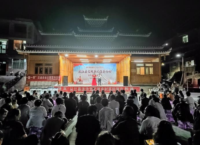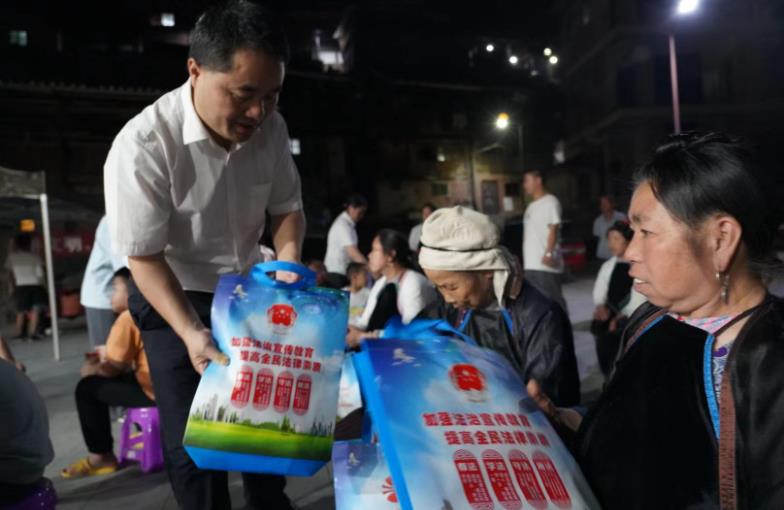 演出前,工作人员通过悬挂宣传标语、播放普法宣传侗歌侗戏音频、发放法律知识宣传资料的方式进行现场宣传。同时,以“点单式”“面对面”的方式入户开展宣传,用最通俗易懂、简单直白的语言向村民解读《民法典》《劳动法》以及非法集资、养老诈骗、电信网络诈骗等和群众生活密切相关的法律知识和热点问题,积极解答群众咨询等相关问题。把法言法语变成老百姓听得懂的语言,让群众一看就明白,一听就能懂,一下就记得住。