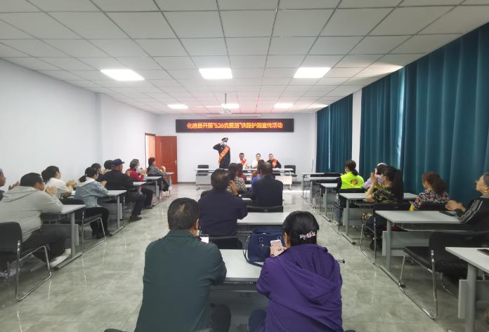 活动中,化德车站派出所牛所长深入浅出地讲述了铁路的历史、铁路在交通运输中的重要作用,以及《铁路法》《铁路安全管理条例》等有关法律法规。并结合近年来铁路发生的铁路挡停、危行事件等案例讲解了穿行铁路、翻越护网、与行驶的列车拍照、向列车抛掷石块的危险。提醒居民不要爬、钻铁路防护栅栏,更不要破坏铁路防护网。