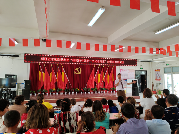 6月11日,吐木秀克镇兰杆村村委会大礼堂气氛热烈,欢呼声不断,新疆艺术剧院歌剧团“我们的中国梦—文化进万家”赴基层惠民演出在此火热举行。