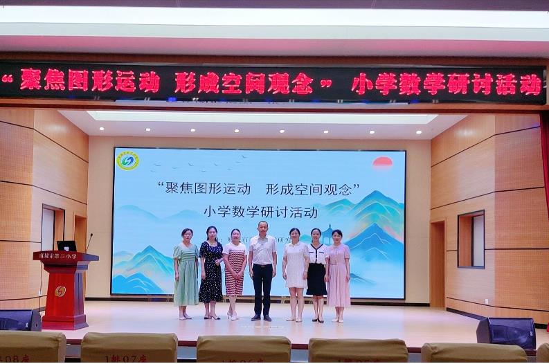为进一步推广新课标理念的落实,帮助我市小学数学教师开展核心素养导向下课堂研究,6月16日,“聚焦图形运动,形成空间观念”全市小学数学研讨活动在三小举行。麻城市教科院周斌院长、小学部负责人刘英主任、小学数学兼职教研员袁赛霞主任一行和全市各小学数学教研组长共同参加本次研讨活动。