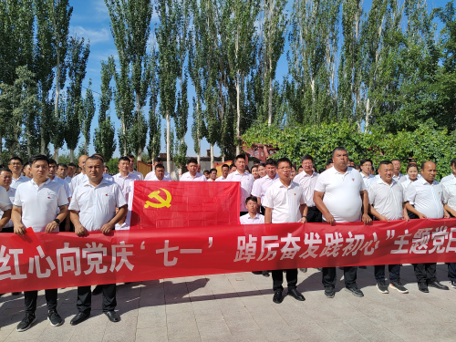 为庆祝建党102周年,7月1日,吐木秀克镇机关全体党员来到兰杆村胡达拜地·依明爱国主义教育基地,开展“红心向党庆‘七一’踔厉奋发践初心”主题党日系列活动,吐木秀克镇各村第一书记、村党支部书记、四老人员代表、新入党党员也都参加了活动。