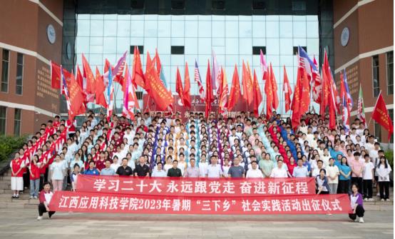 为认真学习宣传贯彻党的二十大精神,大力推进农村精神文明建设,引导大学生在社会实践中提升自我,组织学生走进农村,促进乡村振兴。江西应用科技学院于6月30日下午4点在图书馆门口举办全国大学生暑期三下乡社会实践活动出征仪式。