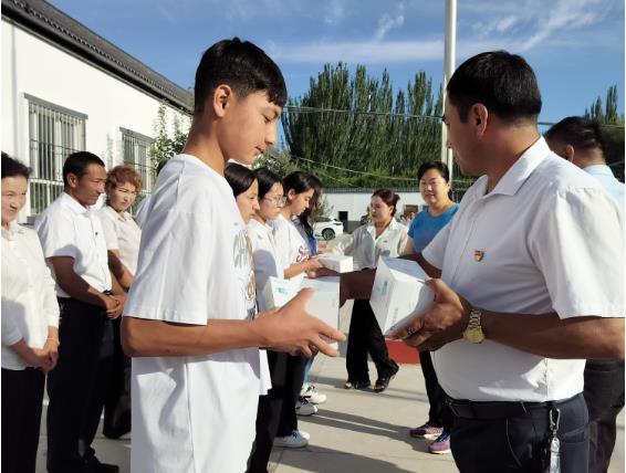 “感谢工作队和村党支部对我们的关心和奖励,今后我们一定努力学习,将来作一个对社会有用的人材,用实际行动为建设家乡贡献力量!”温宿县托乎拉乡河畔村2023届高考生古丽孜巴·热合曼从阿克苏地委史志办驻河畔村工作队手中接过奖品激动地说。