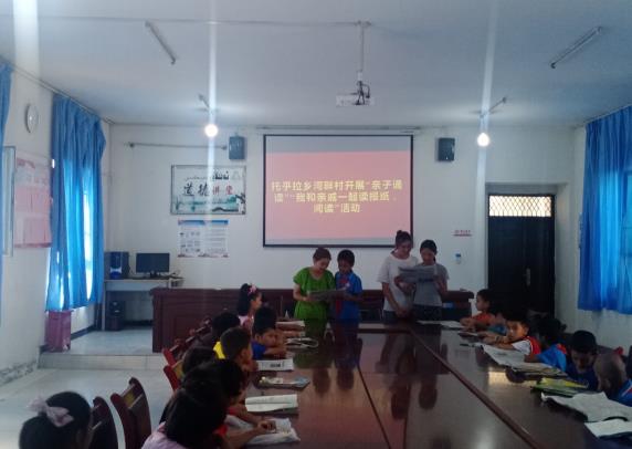 为传承中华优秀传统文化,深化经典诵读文化育人活动,培育践行社会主义核心价值观,厚植中小学生爱国情怀,阿克苏地委史志办驻温宿县托乎拉乡河畔村工作队、村干部依托“红领巾小课堂”,组织返乡大学生、小学生及其家长,开展“大手拉小手 一起诵经典”“我和亲戚读报纸”活动。