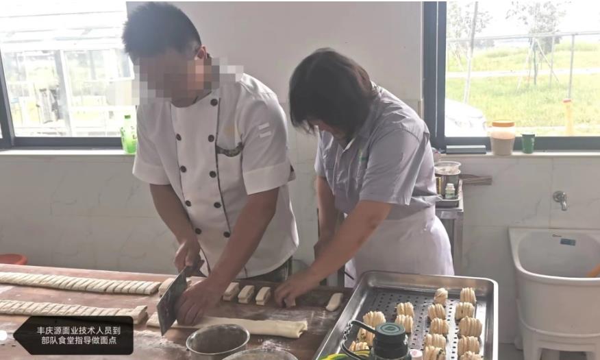 该公司为全面贯彻党的二十大精神,夯实军粮供应主渠道,提升备战打仗服务保障效能,开展粮油科技进军营活动,专门邀请军粮面粉供应厂家襄阳丰庆源面业有限公司面点师傅到部队食堂指导面点制作。采取展板展示,发放宣传资料, 向部队官兵广泛宣传粮油营养健康常识、粮油保管、节粮方面的知识。