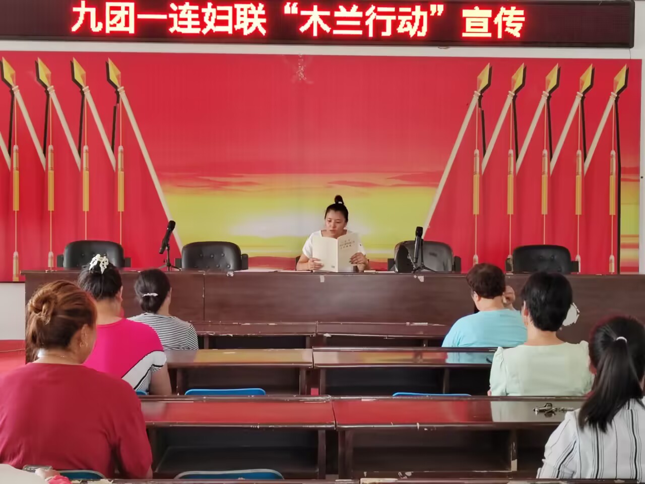 7月27日,新疆生产建设兵团第一师阿拉尔市九团一连妇联组织召开“木兰行动”宣讲活动。