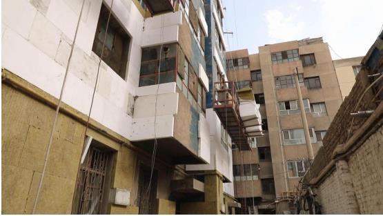 新城街道团结路社区物资局家院楼房建于1995年,是库车市相对较早的楼房,虽然还能使用,但存在管道堵塞、外墙渗水、道路破损、线路老化、垃圾乱堆等突出问题,居民长期生活不便,遇到连续降雨天气,道路泥泞不堪。这次改造不仅对楼房进行美化、亮化,加装保温层,同时对市政基础设施、公共服务设施一并进行提升改造。
