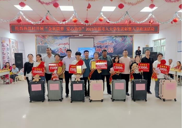 “非常感谢镇党委、驻村工作队、村两委及社会爱心人士对我的帮助,我这次高考取得了优异的成绩,全靠大家的支持与厚爱,‘滴水之恩当涌泉相报’,我将用实际行动,学好专业知识,将来为新疆的发展和建设贡献自己的力量。”8月19日,在新疆阿克苏地区阿克苏市喀拉塔勒镇托吾热其村,收到浙江农林大学录取通知书的学生布玛丽亚木·阿合尼亚孜在宣讲中感激地说道。