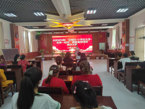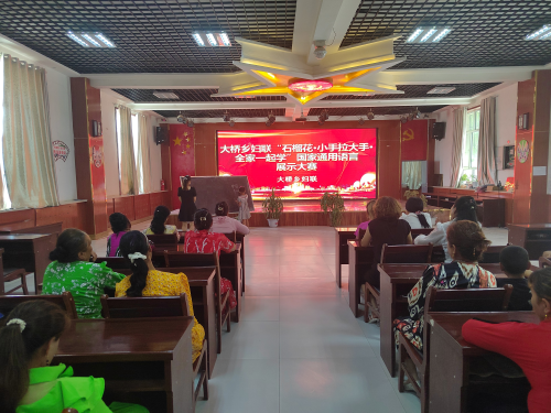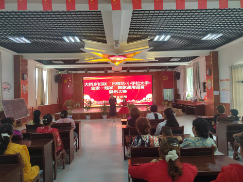 进一步铸牢中华民族共同体意识,引领广大家庭学用国家通用语言文字,不断提升妇女儿童和家庭使用国家通用语言文字的水平今日大桥乡妇联大桥乡妇联“石榴花·小手拉大手·全家一起学”国家通用语言展示大赛。