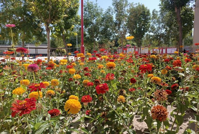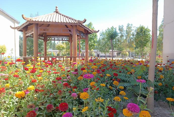 走进努尔巴格乡亚当村委会,只见一簇簇菊花竞相怒放,花瓣层层叠叠,花朵错落有致,嫣红、明黄、玫红,各种颜色的花儿争奇斗艳。那美,惊艳了眼眸,美丽了心情,让每一个进入村委会的人都不由得驻足停留赞美一番。