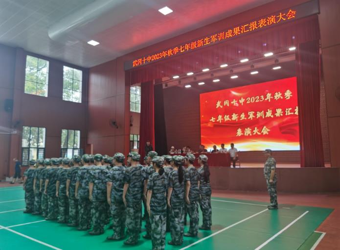 少年凌云志,风华正茂时。为激发同学们的爱国热情,培养吃苦耐劳和集体主义精神,养成良好的生活和学习习惯,8月27日下午,武冈十中在大礼堂组织七年级军训会操表演,七年级全体学生以顽强刻苦、昂扬向上、英姿帅爽的精神状态取得了丰硕的训练成果,为大家带来了一场精彩绝伦的军训汇操展示。
