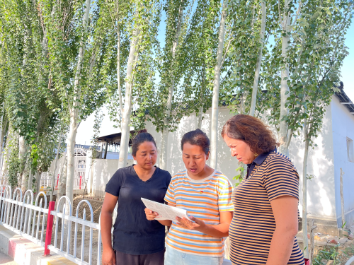 群众在哪里,宣讲阵地就在哪里。为真正做到打通宣传群众、教育群众、引领群众和服务群众的“最后一公里”,驻村工作队带着学习资料和手册奔走在大街小巷、田间地头,宣讲内容紧紧围绕8月26日习近平总书记听取自治区党委和自治区政府、兵团工作汇报时的重要讲话精神。
